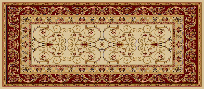 - Bordură: Ornamentală, care completează aspectul general al covorului.
